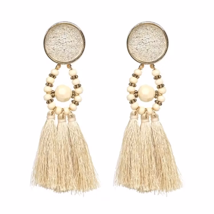 Amina Glam Beige Örhängen 129 kr 65 kr Trendiga örhängen med tofsar.Längd: 10,6cm I lager. Lägg i korgen Dela