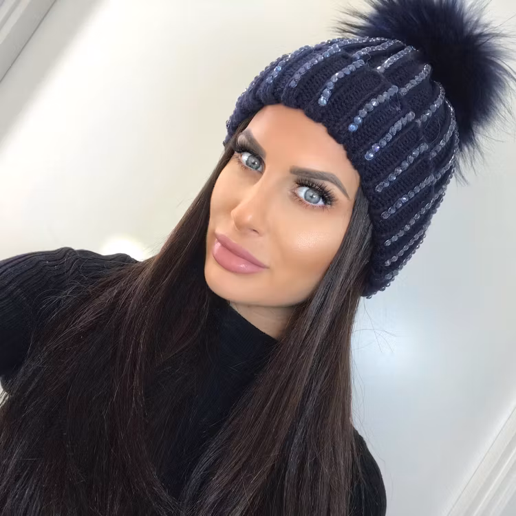 Sparkling Pom Pom (Faux Fur) Hat Ramina Blue 499 kr 250 kr Denna stickade och gnistrande hatt med pälskula kommer att hålla dig varm och snygg under de kalla månaderna. Pom Pom: tvättbjörnPom Pom: Raccoon I lager. Lägg i korgen Dela