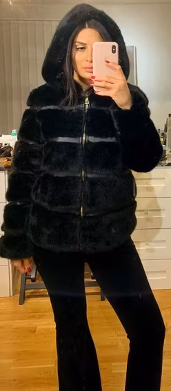 Håll dig varm och snygg hela vintern i Celine Jacket med fuskpäls och detaljer av skinnimitation av hög kvalité och generös luva.2 fickor och zipper. Mater