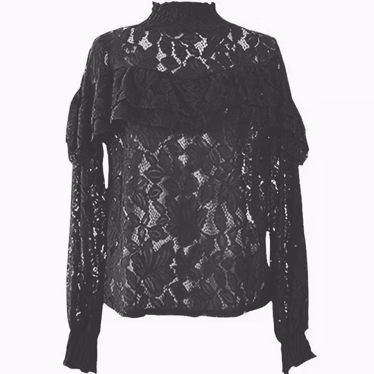 Vilya Top Black 399 kr 200 kr Långärmad blus med högkrage i spets och volang. Size S M L I lager. Lägg i korgen Dela